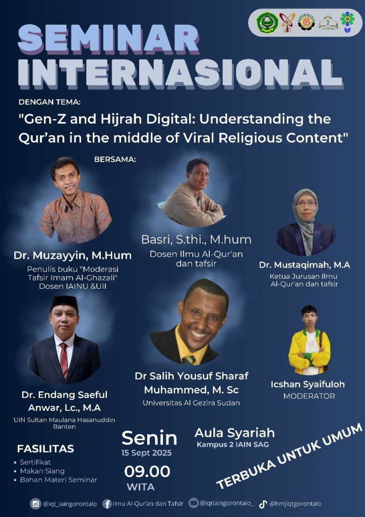 Gorontalo – Mahasiswa Program Studi Ilmu Al-Qur’an dan Tafsir, Fakultas Ushuluddin dan Dakwah, IAIN Sultan Amai Gorontalo kembali menorehkan prestasi membanggakan dalam ajang Seleksi Tilawah Al-Qur’an dan Hadis (STQH) tingkat Kota Gorontalo tahun ini. Para mahasiswa berhasil meraih juara di Read more