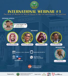 Jurusan Ilmu Al-Qur’an dan Tafsir IAIN Sultan Amai Gorontalo bekerjasama dengan Universitas Malaya dan AIOU Islamabad Pakistan dan UIN Sunan Gunung Djati Bandung  menggelar “Internasional Webinar bertemakan “The Role of Muslim to World Peace” melalui aplikasi zoom dan disiarkan langsung melalui kanal Youtube IAIN SA Official dan Mitra Paranti Mediatama.